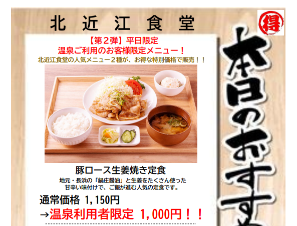 イベントとお知らせとブログ イベント お知らせ ブログ お知らせ 2021.12.12 熱子さん お知らせ 2025.11.02 【ご案内】 お知らせ 2025.12.01 【お知らせ】平日限定!1000円定食・第2弾販売! お知らせ 2025.11.30 [2025年12月]北近江リゾート休館日のご案内 お知らせ 2025.11.22 【2025年】パン工房Tim シュトレン販売! お知らせ 2025.11.09 【お知らせ②】平日限定!温泉&食堂お得セット販売!