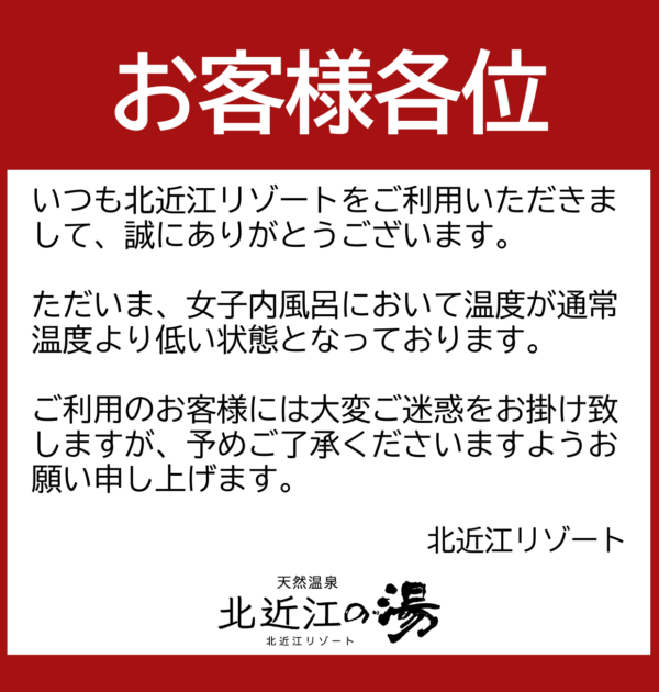 いつも北近江リゾートをご利用いただき誠にありがとうございます。