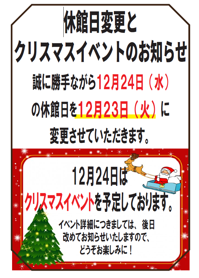 イベントとお知らせとブログ イベント お知らせ ブログ お知らせ 2025.12.11 休館日 お知らせ 2025.11.02 【ご案内】 お知らせ 2025.12.11 【2025年12月】休館日変更のお知らせ お知らせ 2025.12.01 【お知らせ】平日限定!1000円定食・第2弾販売! お知らせ 2025.11.30 [2025年12月]北近江リゾート休館日のご案内 お知らせ 2025.11.22 【2025年】パン工房Tim シュトレン販売!