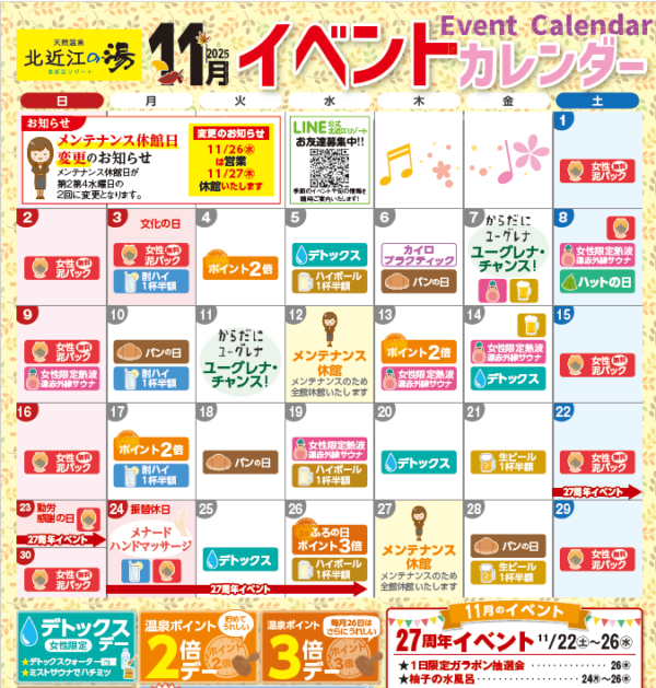 参加されたお子様と保護者の方は「天然温泉 北近江の湯」に特別料金でご入浴頂けます。