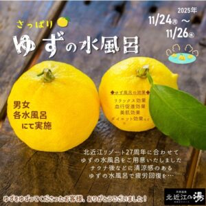 イベントとお知らせとブログ イベント お知らせ ブログ お知らせ 2025.11.19 ゆず お知らせ 2025.11.02 【ご案内】 お知らせ 2025.10.30 [2025年11月]北近江リゾート休館日のご案内 お知らせ 2025.11.09 【お知らせ②】平日限定!温泉&食堂お得セット販売! お知らせ 2025.11.09 【お知らせ①】平日限定!1000円定食・第1弾販売! お知らせ 2025.11.01 【お知らせ】北近江食堂の新メニュー☆