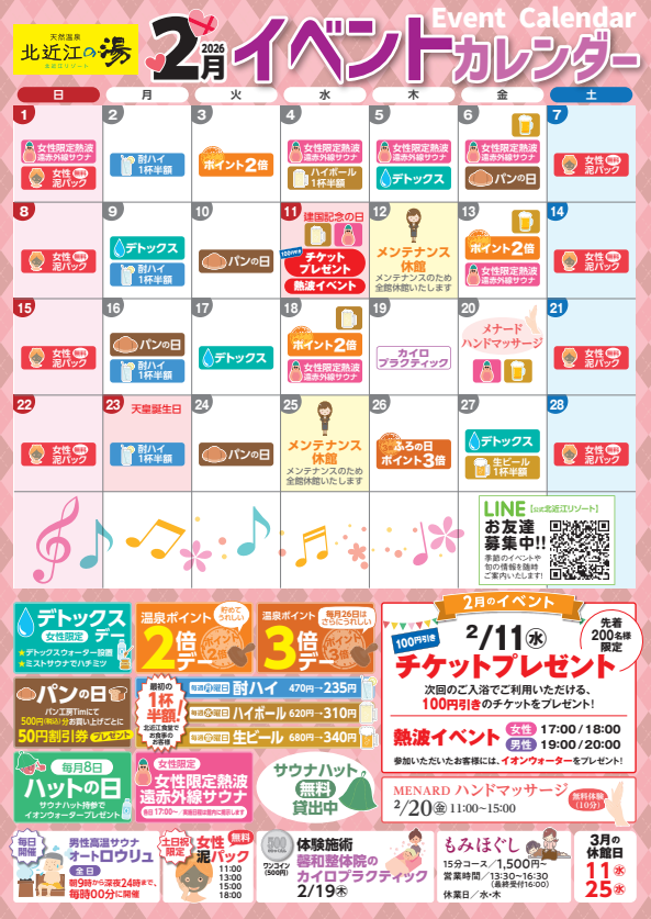 2月のイベントカレンダーのご案内です。